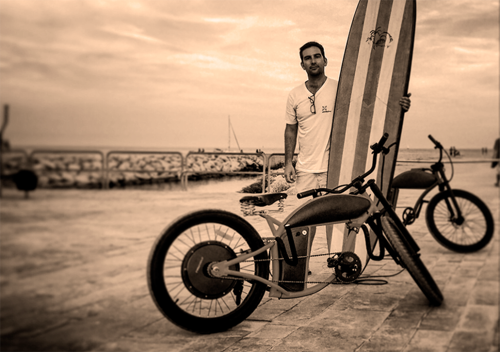 He applies his talents to yacht design and surfing, his passion. Creator of a brand of paddle surf boards, reference in the global industry, designs the electric bicycle of your dreams, ecological, elegant, combining a miticulous design and high technology.